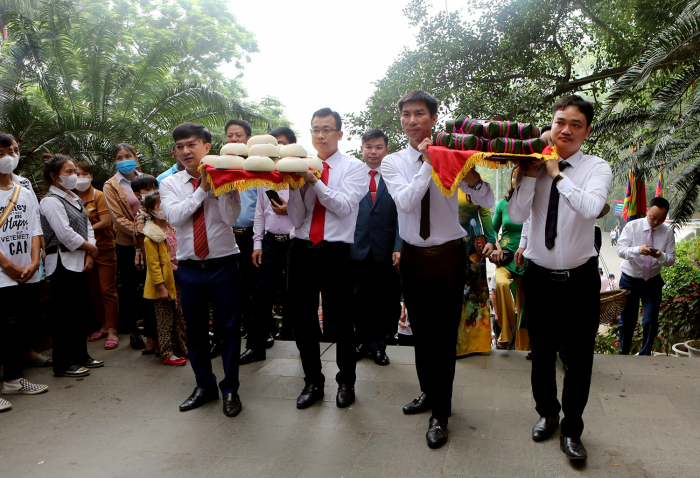 Huyện Cẩm Khê, Tam Nông – đơn vị giành giải Nhất tại Hội thi Gói, nấu bánh chưng, giã bánh giầy năm 2022 dâng lễ vật 18 chiếc bánh chưng, 18 chiếc bánh giầy tưởng niệm các Vua Hùng dịp Giỗ Tổ Hùng Vương năm Quý Mão 2023